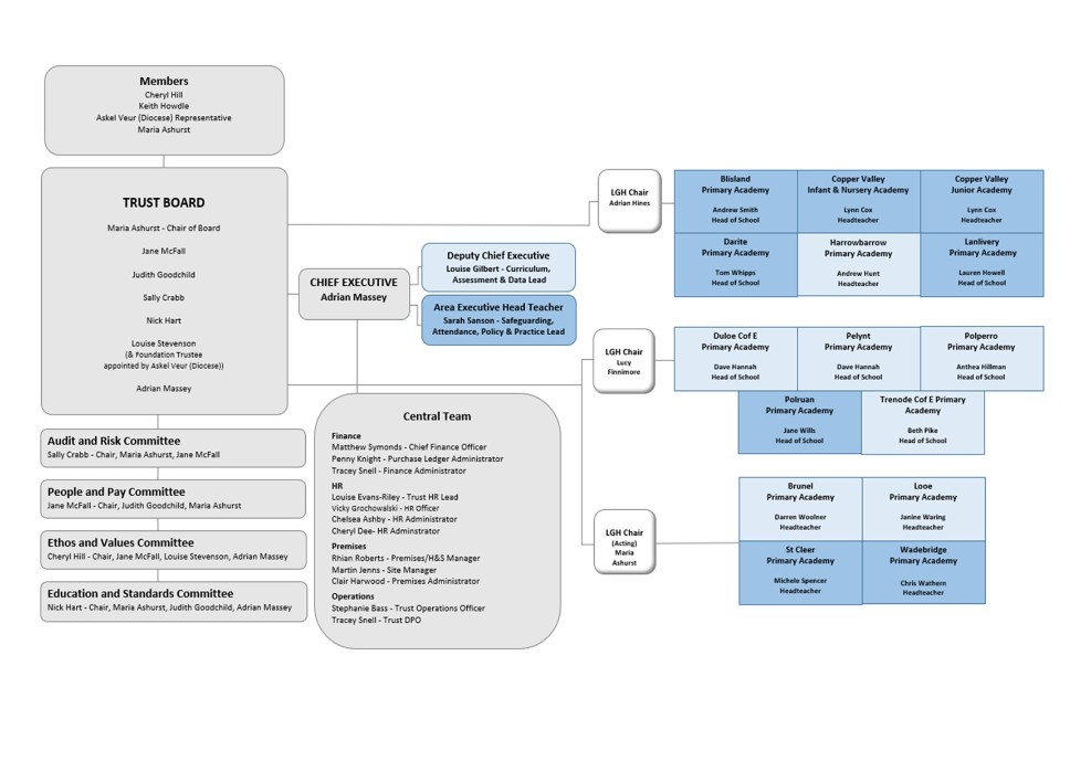 The Trustees set the strategic direction for the Trust; hold the Trust to account for the outcomes of children and oversees the work of the executive officers.
