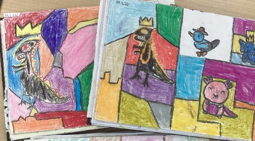 In our Wider Curriculum, we have been learning about the city names in North American countries, we have 'built a god' in RE, learnt how to use aparatus for balance and core tension in PE and for our Art, we have been investigating Basquiat's use of animal art for his masterpieces. Tristan, has produced an incredible framed piece of work for his homework - thank you!